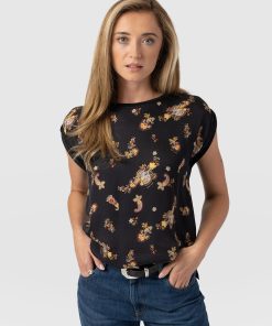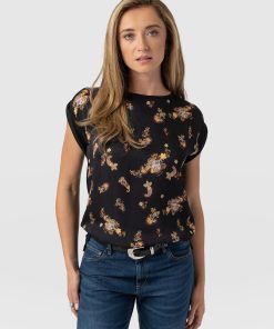 Saint + Sofia Women’s Tabitha Short Sleeve Blouse – Black | Black