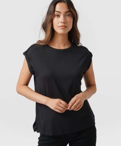 Saint + Sofia Women’s Turn Up Tee – White – Black Lightning Bolt | White – Black Lightning Bolt