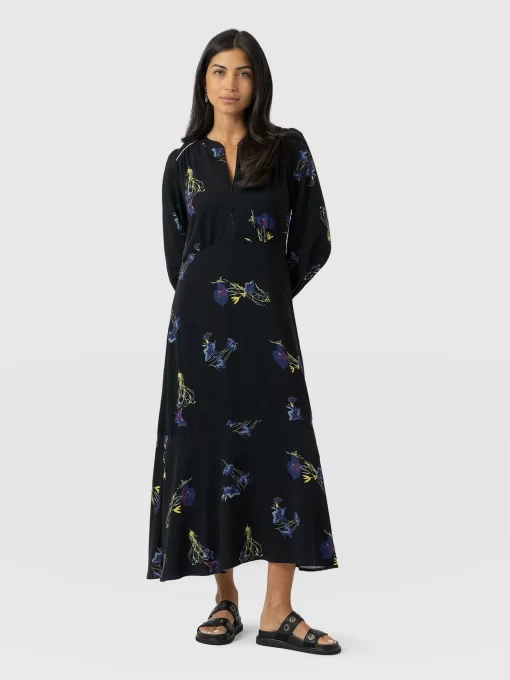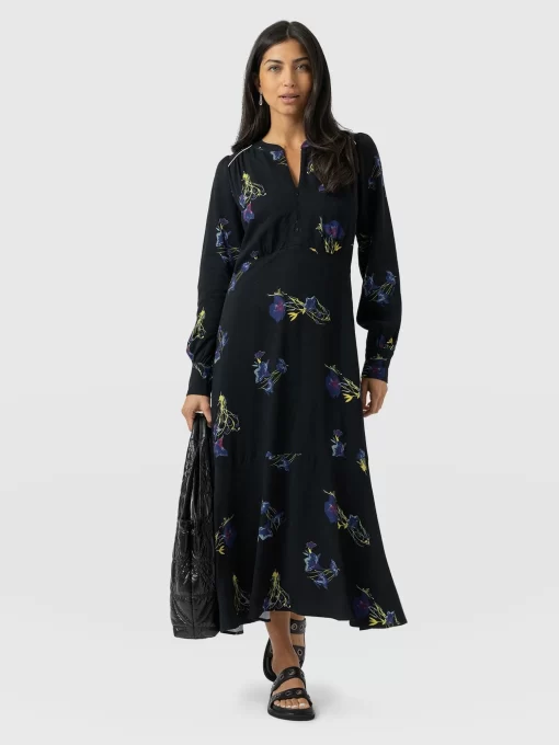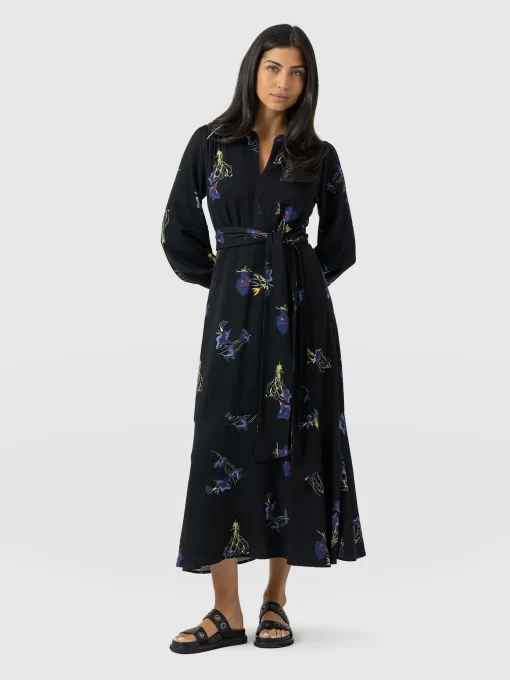 The Adaline Zip Up Dress is one of our newest best selling styles.This long-sleeve dress is handmade from a beautifully soft eco viscose and features our exclusive Blue Lily Gardens print to add a floral flourish to your wardrobe. It’s expertly handmade in Europe and includes an adjustable neckline that can be easily unzipped to suit your style. At the waist, a removable belt allows you to flatter the fit before flowing into a skirt. Wear yours with heeled boots and a leather jacket to complete the look.