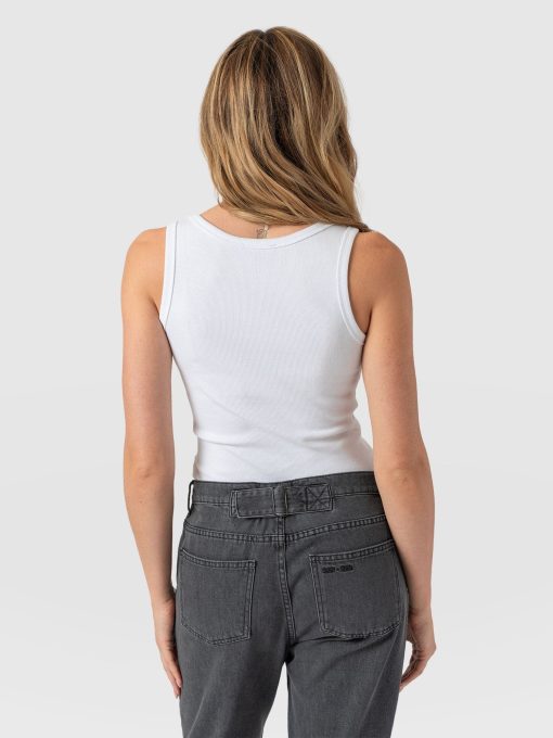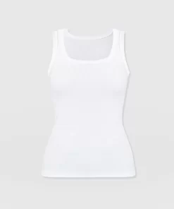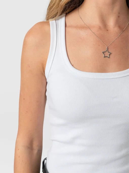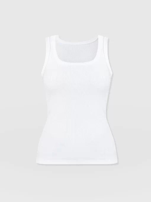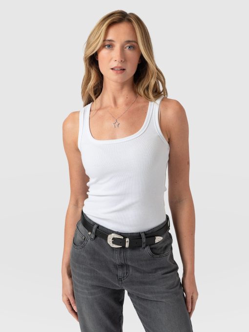 A wardrobe staple and a style built for layering, the Asher Scoop Neck Vest in white is handmade using stretch-infused organic cotton. It’s cut to a classic scoop-neck design with chunky shoulder straps and a figure-hugging fit. As for the texture, the ribbed finish is perfect for adding a touch of interest to the design. Wear yours alone in warmer climes, or use it to layer under your favourite shirts, cardigans, or knits – the choice is yours.