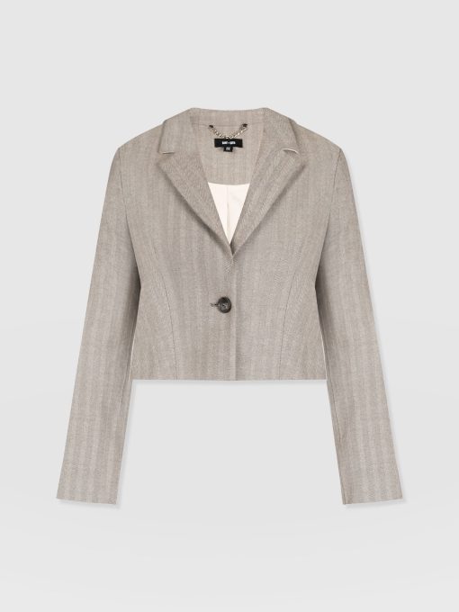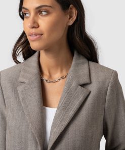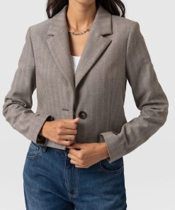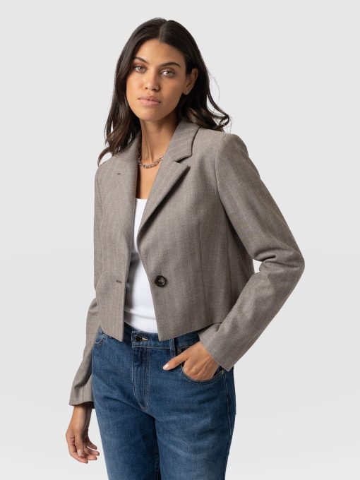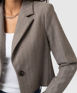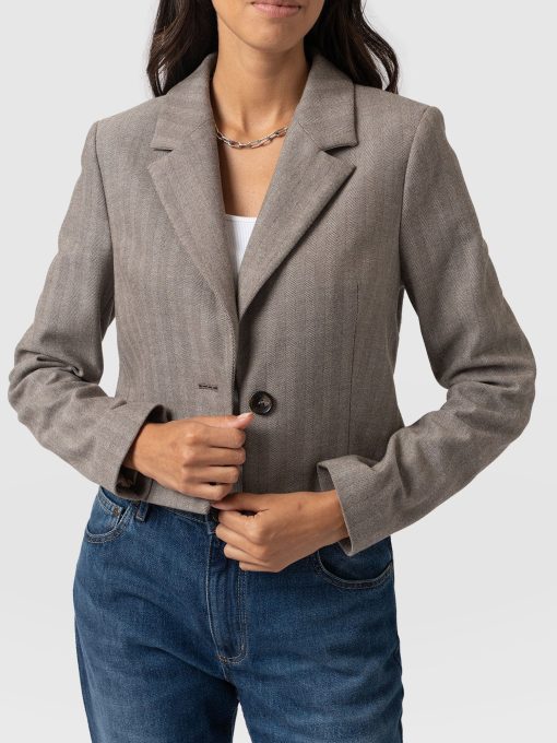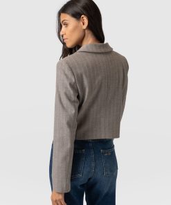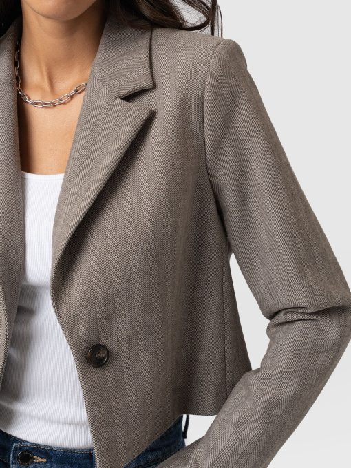 Saint + Sofia Women’s Astrid Cropped Blazer – Brown Herringbone | Brown Herringbone