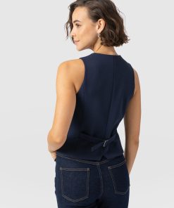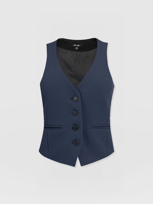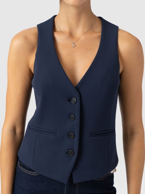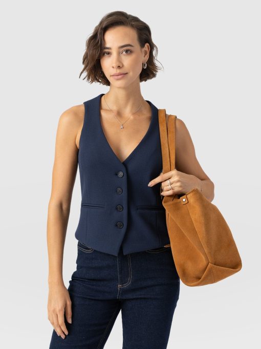The perfect blend of workwear with off-duty style, the Astrid Waistcoat in navy is a wardrobe must-have. It’s made from luxe viscose crepe for a planet-friendly finish and features a V-neckline with branded buttons at the front. Wear it alone for a cosmopolitan look, or style it over our Easy Tee in white for something more casual.