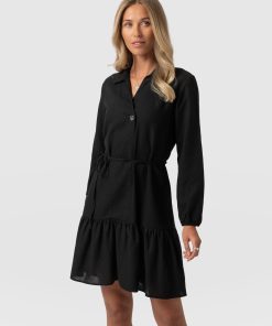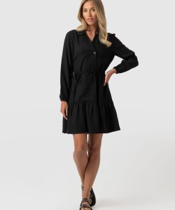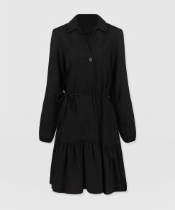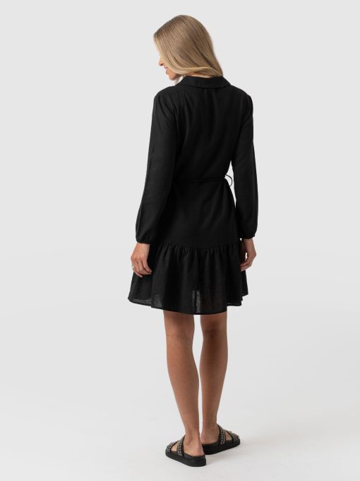 Saint + Sofia Women’s Aurelia Mini Linen Dress – Black | Black