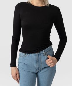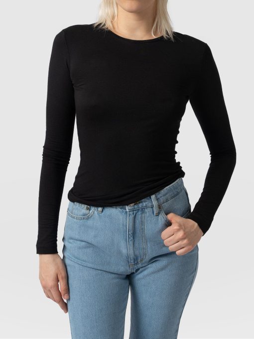 Saint + Sofia Women’s Austen Crew Neck Tee – Black | Black