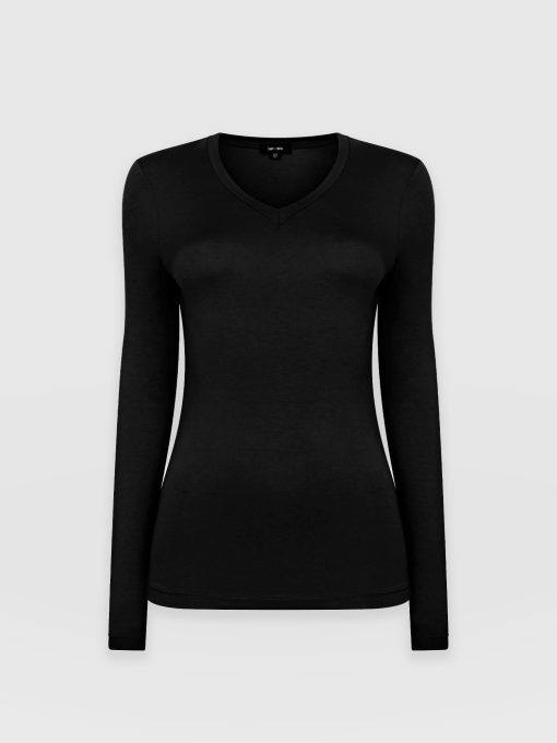 A classic v-neck t-shirt with long sleeves that’s just perfect for layering. We designed it with a comfortable, easy fit and made it with a beautifully soft and smooth eco-viscose fabric that’s also sustainable. Perfect for work and weekends (especially when layering) or wear it on its own with pretty much anything.