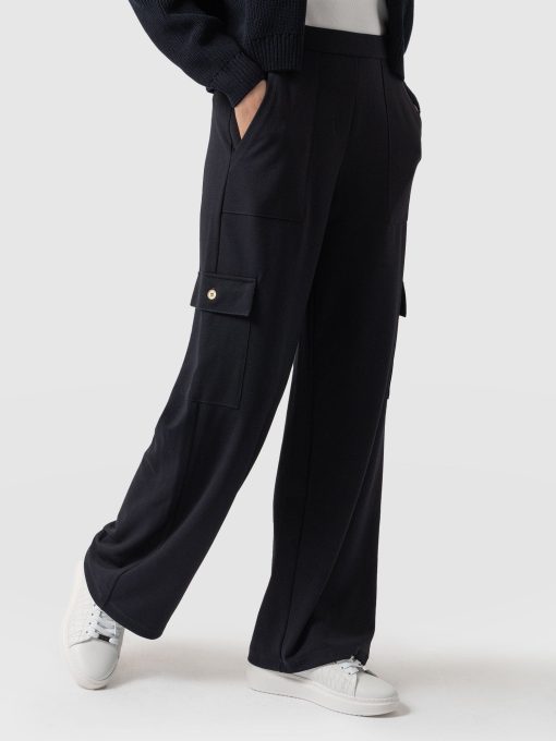 The bestselling Chelsea Pant in navy has been redesigned – keeping all the features you love in the classic wide-leg pants but with new cargo pockets for a hint of sophisticated safari. Retaining the chic gold touches and elasticated waistband, they ensure comfort and style. But cut from a soft Ponte di Roma fabric that is wrinkle and crease-free, they create a beautiful drape that’s easy to wear all week long.
