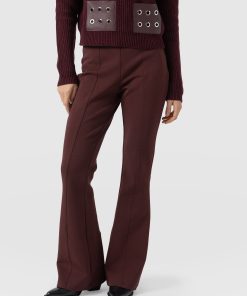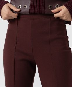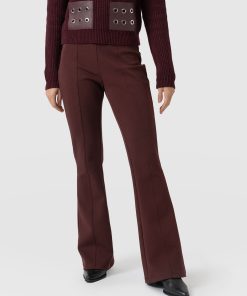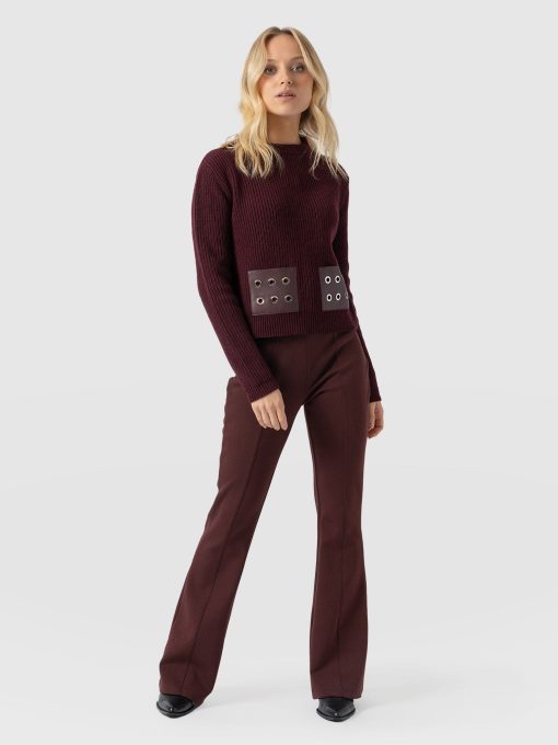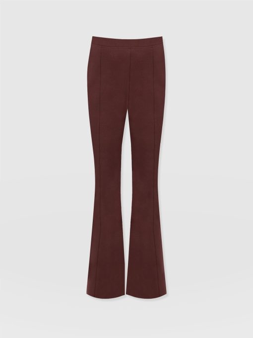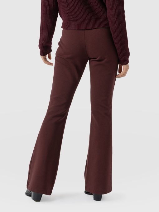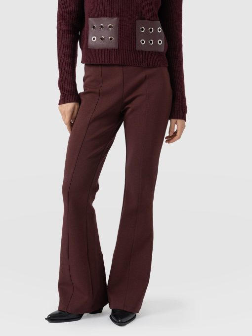 Meet the Fearne Leggings. This maroon pair is handmade by skilled artisans who pride themselves on quality and texture. Their flared shape is cut from an organic cotton jersey that feels sumptuously soft on the skin and is infused with a hint of stretch for all-day comfort. For an elegantly tailored finish, they feature centre seams that create the illusion of a pleated pant. Wear them with the Demi Lace Tee for a statement evening look.