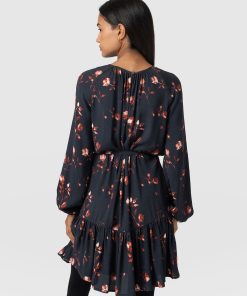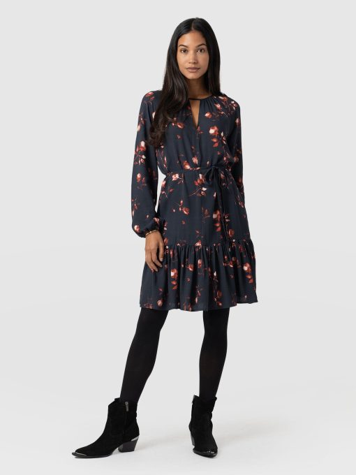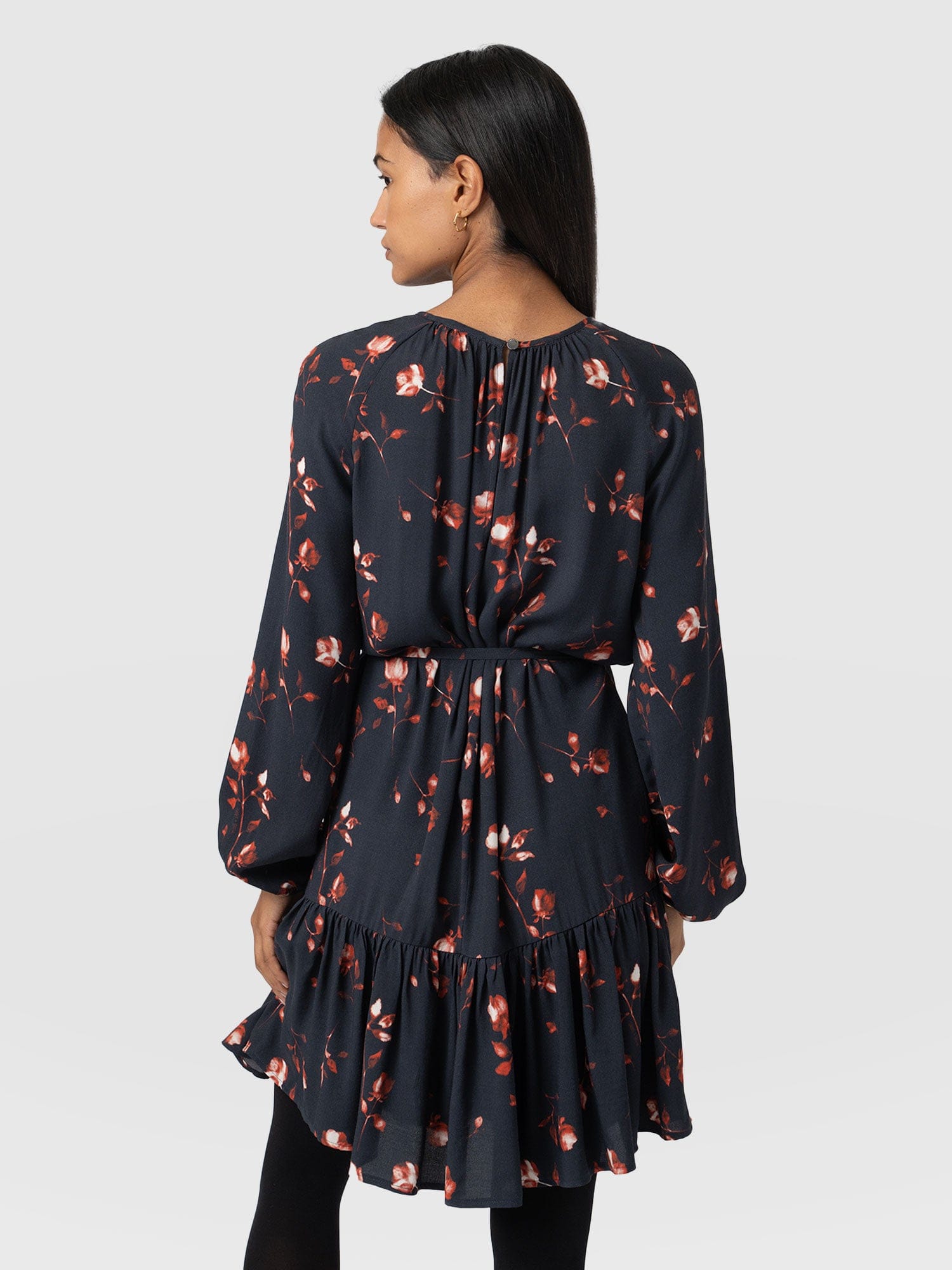 A seasonal mini with an elegant cut-out detail at the chest, the Fia Mini Tiered Dress in Dark Roses is the perfect design to add glamour to your winter wardrobe. It’s handmade using a lightweight viscose and trimmed with long sleeves that cinch at the cuffs for a bishop effect. At the waist, a drawstring belt helps to sculpt your figure and creates a beautiful A-line silhouette alongside the tiered skirt. Dress yours down with boots and a jacket or up with heels and a clutch bag.