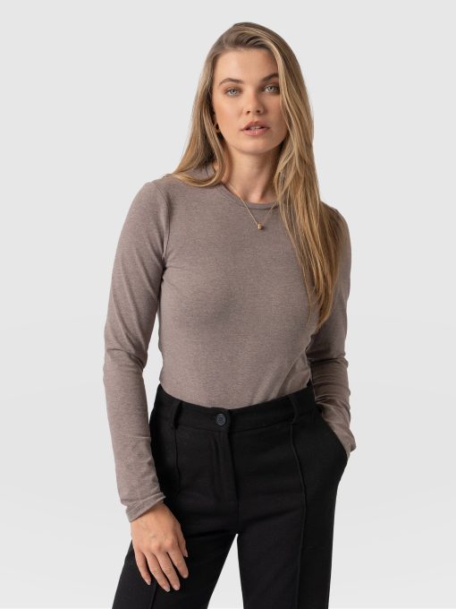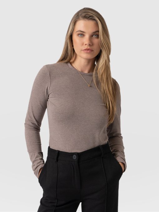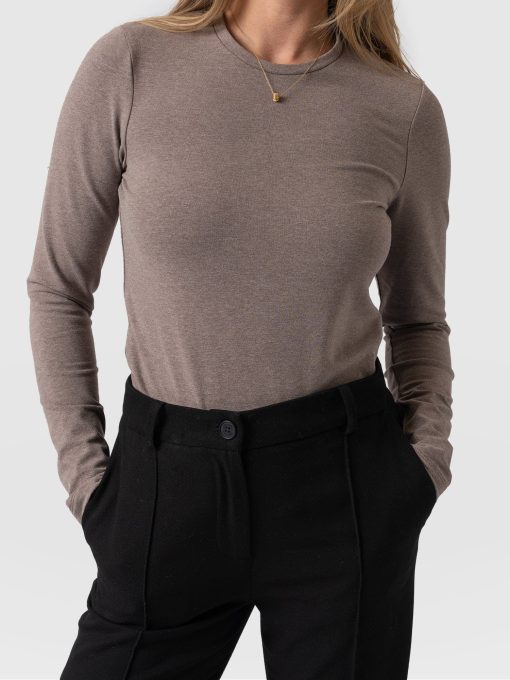 A classic long sleeve crew neck tee design in a cosy cocojersey that can be a chic layering piece with your favorite black blazer, sweater or just an easy lounge tee for cosy days at home. Wear with the matching Apartment Pant in Cocofor a coordinated look.