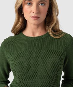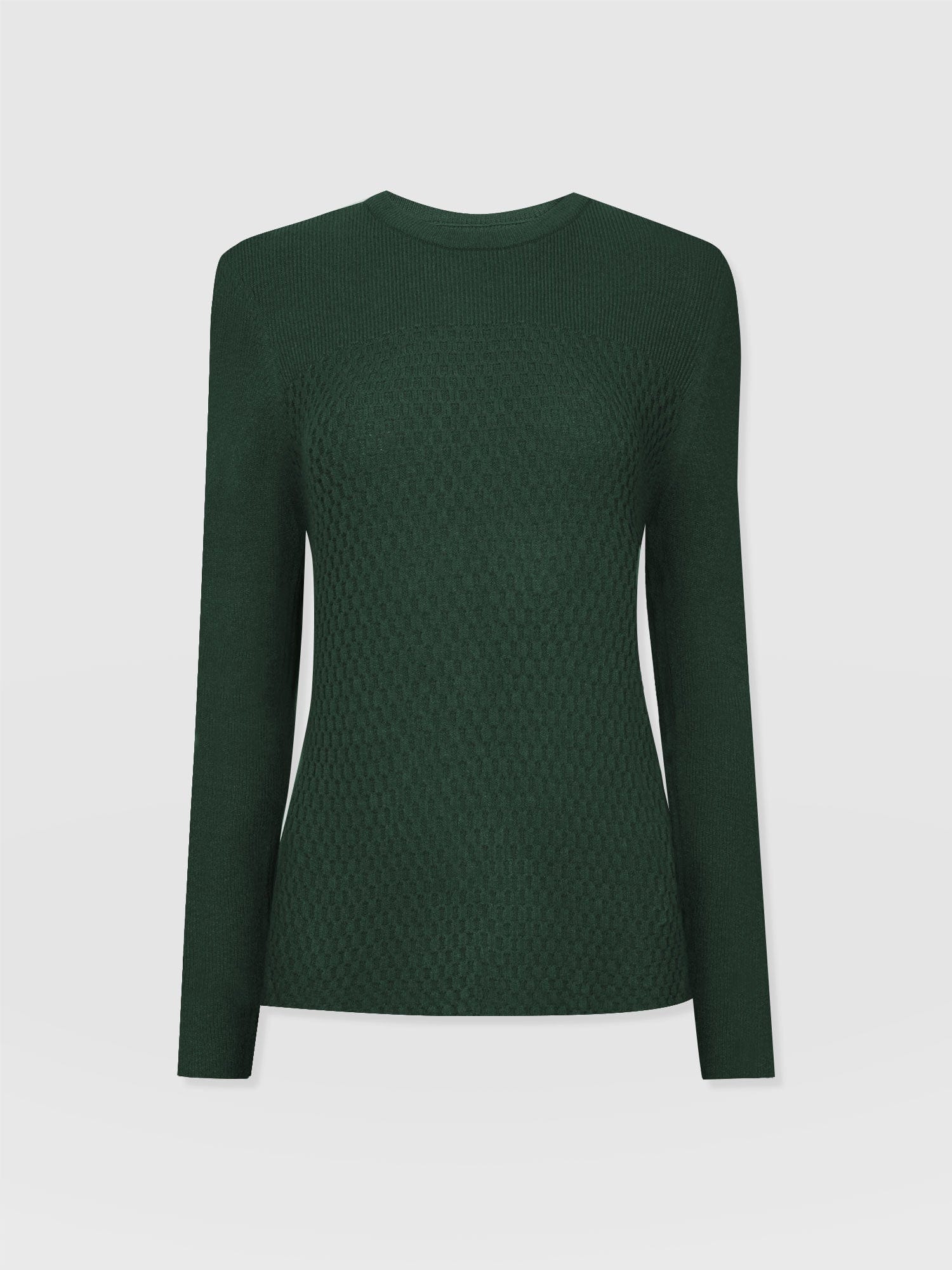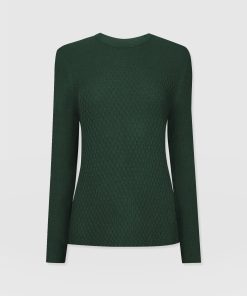 A beautiful rib knit sweater in green. Designed for an elegant aesthetic and a stylish look, it uses a soft and eco-friendly viscose to create a honeycomb pattern across the front. Every style is made in our studios in Europe and finished by hand to ensure the perfect slim fit. Pair yours with jeans or leggings at the weekend for a relaxed look, or style with pants and heels for something more formal ahead of evenings out.