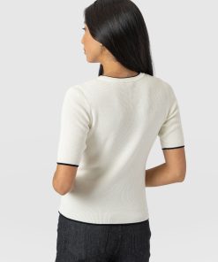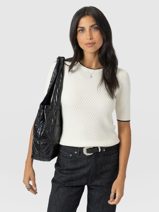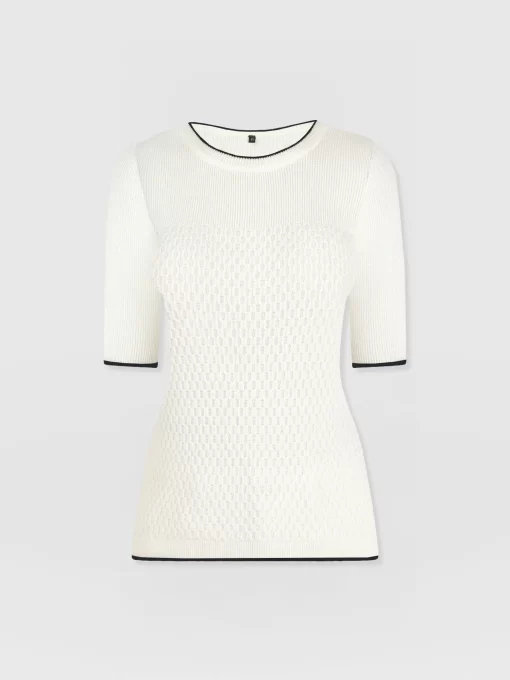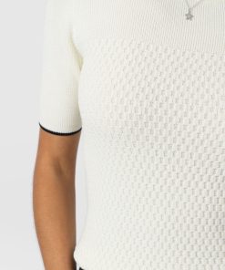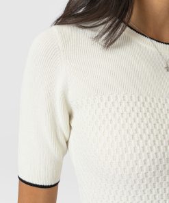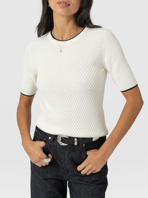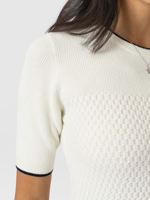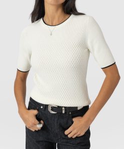 Saint + Sofia Women’s Honeycomb Short Sleeve Knit – Cream | Cream