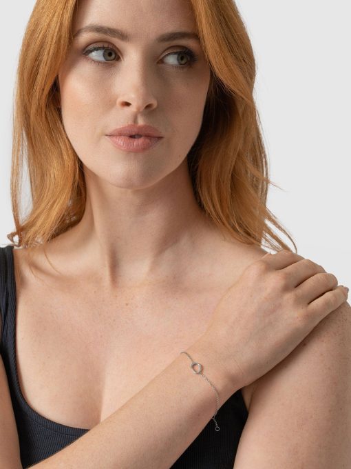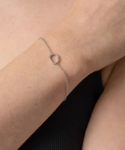 Our elegant Organic Open Oval Charm Bracelet in silver is a stunning piece that exudes natural elegance. The organic open oval charm, beautifully suspended from a delicate cable chain, adds a touch of unique charm to any outfit. Perfect for styling for work and weekends or as a gift for loved ones. For a complete and coordinated look, pair this bracelet with the matching earrings and necklace. Looks beautiful on its own or as part of a layered look.