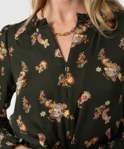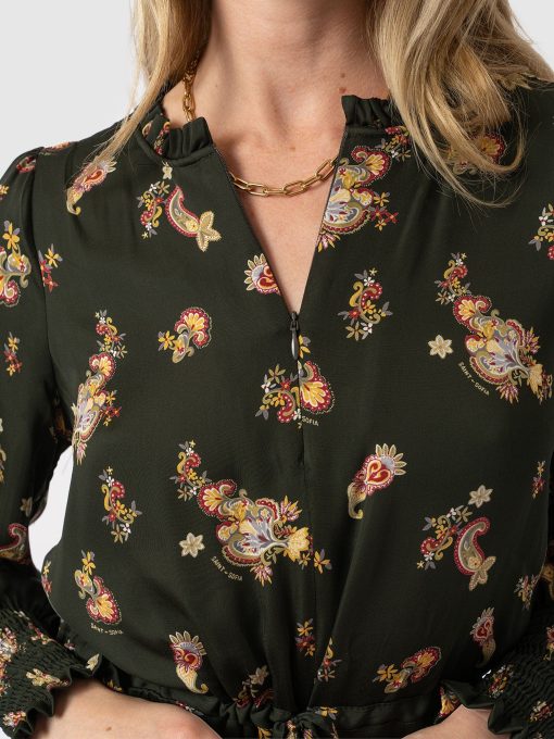 Saint + Sofia Women’s Mini Olivia Zip Up Dress – Khaki Paisley | Khaki Paisley