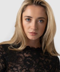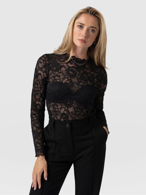 Upgrade your wardrobe with the sophisticated Miranda Lace Tee, a perfect choice for any soiree. Made with gorgeous and luxurious floral black lace, it works beautifully if you layer over your favourite black cami or go without for a more daring look! Pair with your favourite full skirt for a glam look, or black pants and a leather jacket for a more edgy mood.