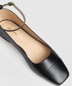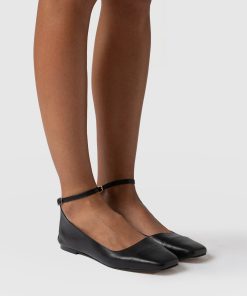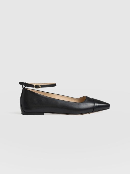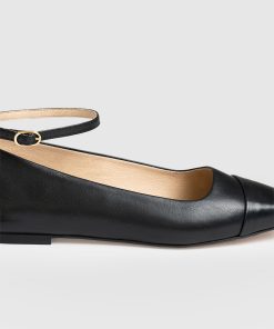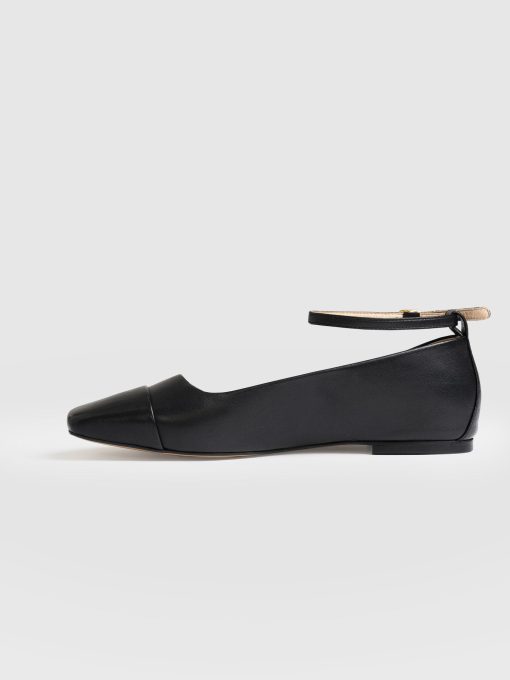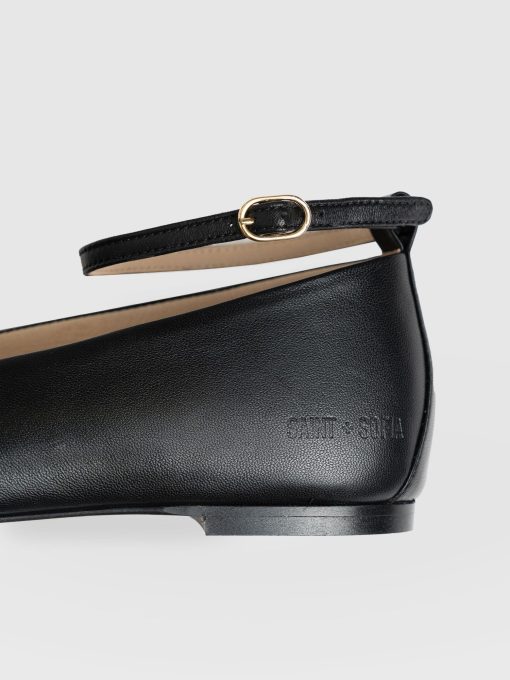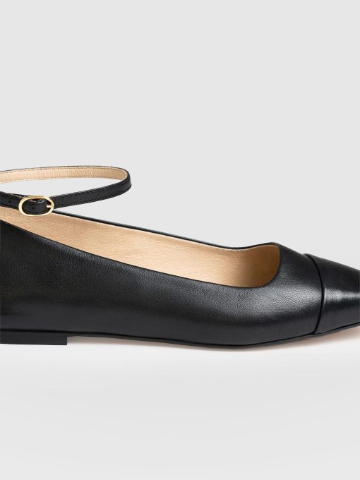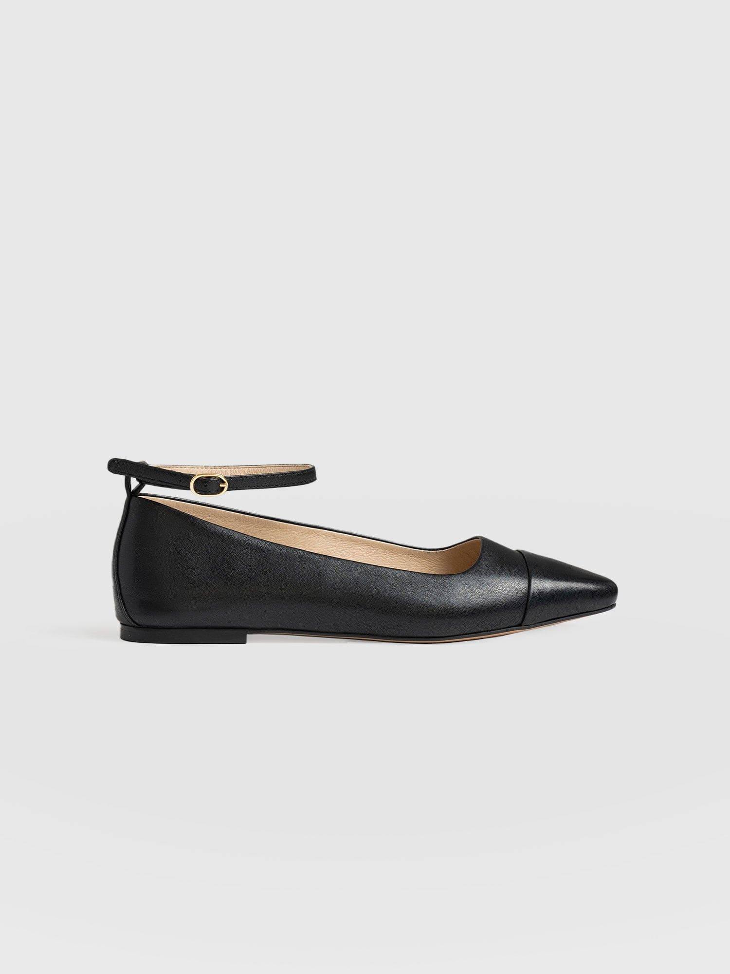 Meet the Leather Ballerinas in Black. Crafted from premium leather and expertly made in Portugal, these flats offer both style and comfort. The ankle strap adds a touch of sophistication while providing a secure fit for all-day wear. Elevate your shoe collection with these versatile and chic leather ballerinas that effortlessly complement any outfit, from casual to formal occasions.