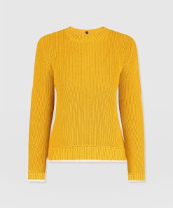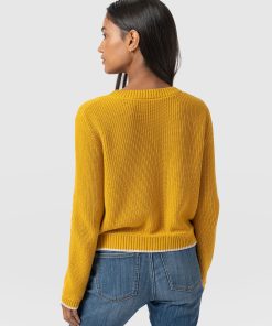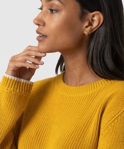A transitional knit designed for the changing seasons, the Remy Crop Sweater in yellow boasts a chunky rib stitch to keep you warm when the weather shifts to cooler temperatures. Its regular-fitting silhouette and crew neckline are handmade using soft and smooth organic cotton and trimmed with contrasting tipping along the cuff and hem for an elegant finish. Dress down with high-waisted jeans and sneakers, or style up with the Mini Etta Layered Skirt and knee-high boots.