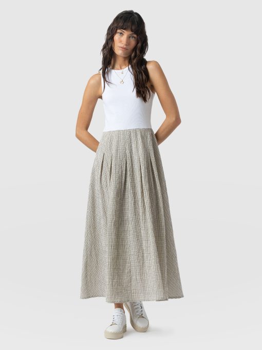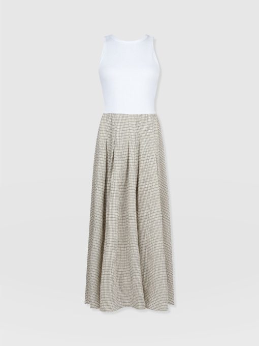 The Renee Contrast Dress is the perfect style for effortless elegance. Just take the full skirt as an example; its lightweight gingham material and calf-grazing cut fuse together to create a breezy finish with a timeless A-line silhouette. As for the top, the stretch-infused cotton bodice provides all-day comfort while the racer neckline helps to keep you cool on warmer days and can be layered under jackets when the temperature drops – the ideal transitional piece if you ask us.
