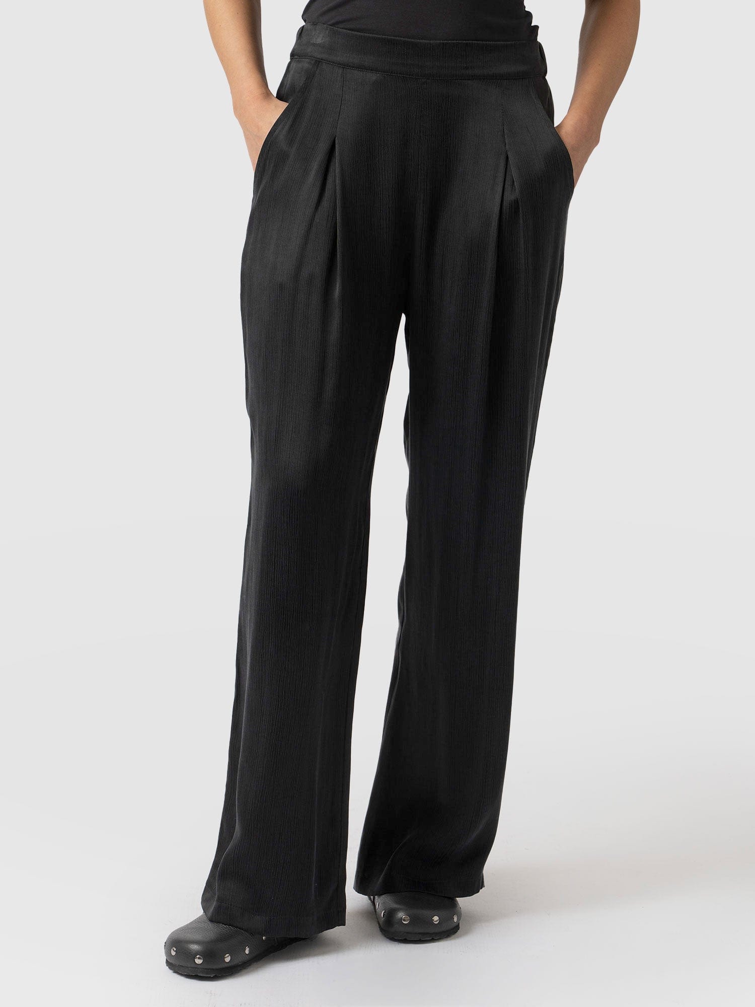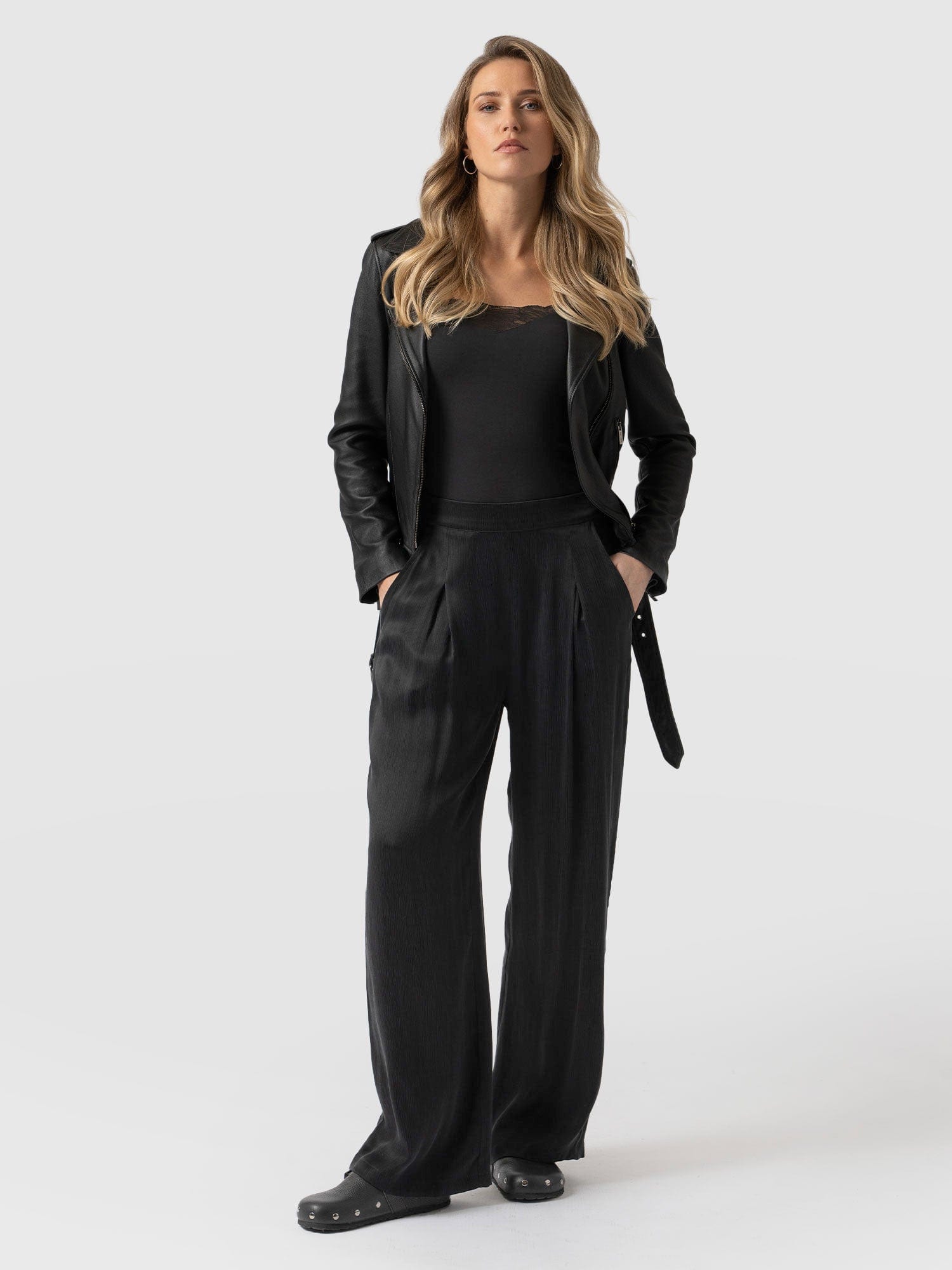 Our timeless Rowan Wide Leg Pant will have you stepping out in style. They’re handmade in our luxurious bettina fabric and trimmed with pockets to keep all your prized possessions safe. Then, they’re topped with an elasticated back waist for day-to-day comfort, and pinned by a front seam and box pleat for an elegant appearance. For maximum impact, wear them with our matching Lace Cami and heeled sandals to complete the look.