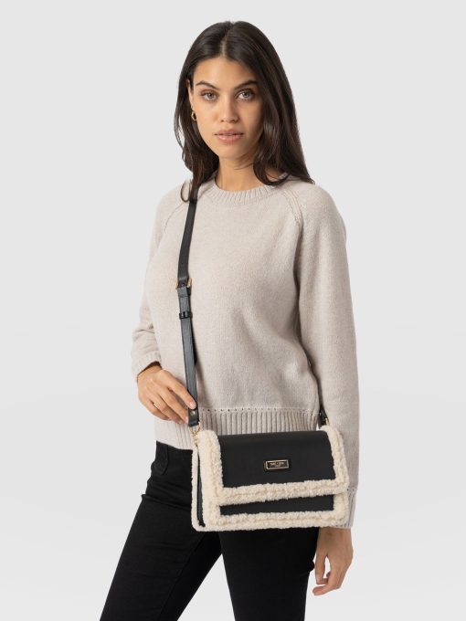 Our new Rylee Bag boasts the perfect recipe for a chic cross-body: shearling and leather. Sculpted by hand to a classic half-flap design, it uses panels of pure leather to create a timeless finish while contrasting shearling lines the trims for a contemporary aesthetic. Inside, you’ll find one main compartment and an internal zipped pocket to keep your prized possessions safe.