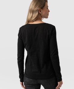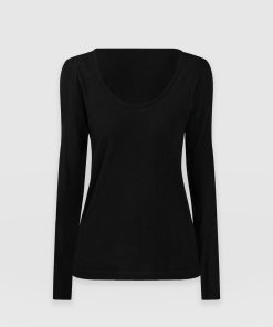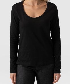 Saint + Sofia Women’s Scoop Neck Long Sleeve Tee – Black | Black