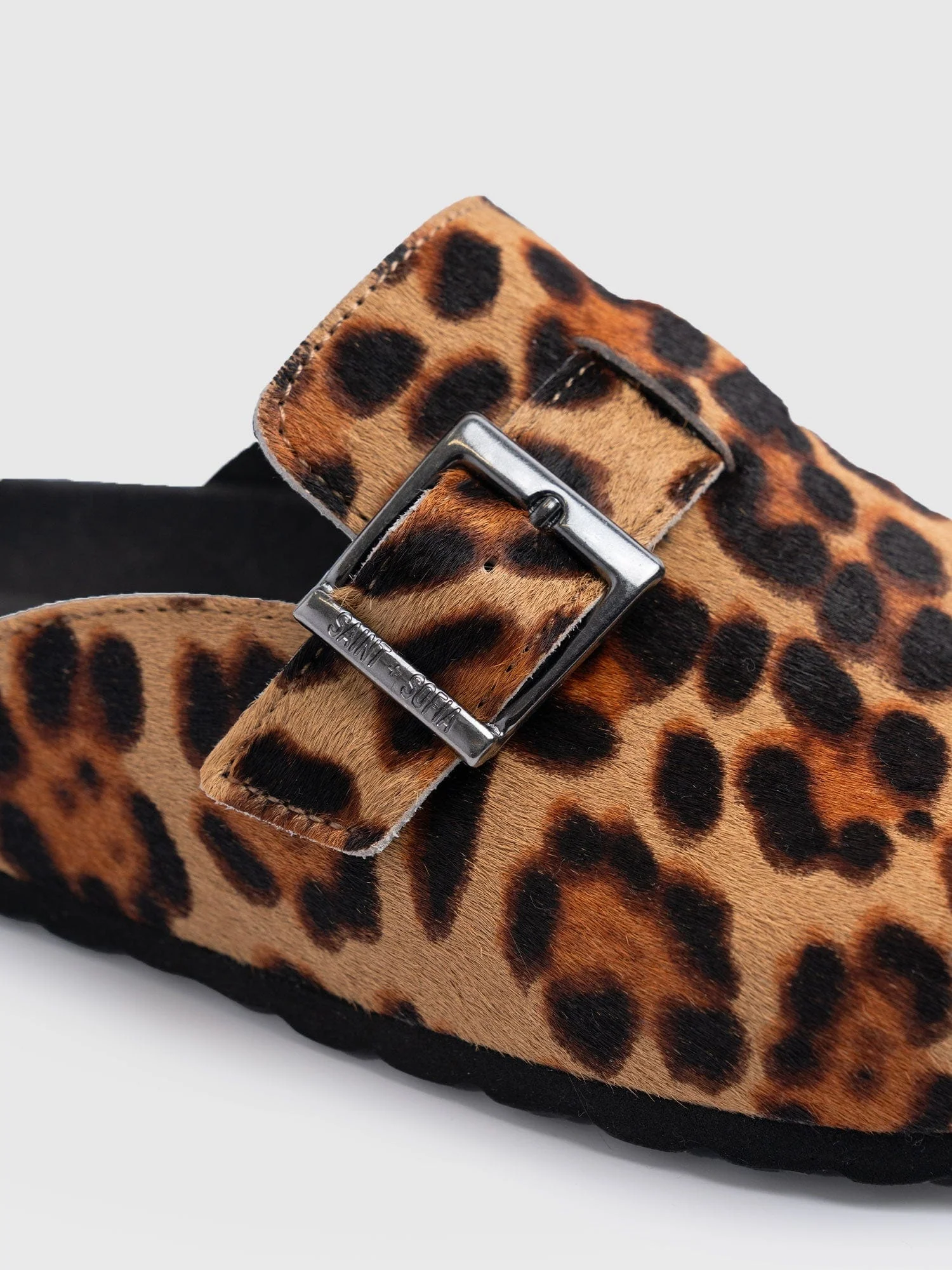 A safari-inspired take on our classic clog, the Jude Clogs are handmade from a supple leather construction and detailed with a textured leopard print finish. At the top, a buckled fastening adds a metallic edge, while the pure cork sole creates a comfortable platform for your daily strolls. Style yours with wide-leg pants or a midi skirt and our Rylee leopard bag to complete the look.