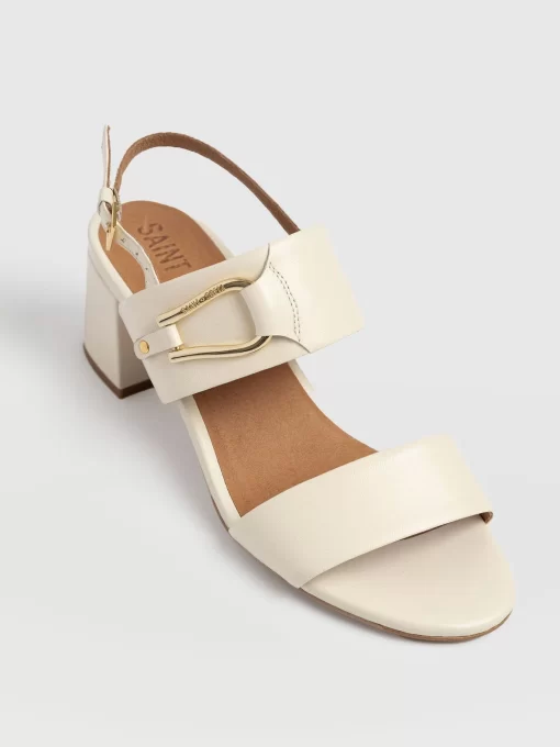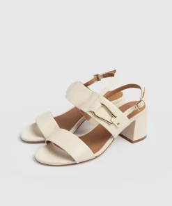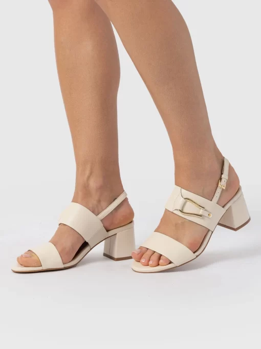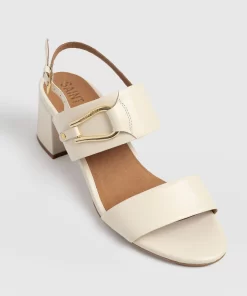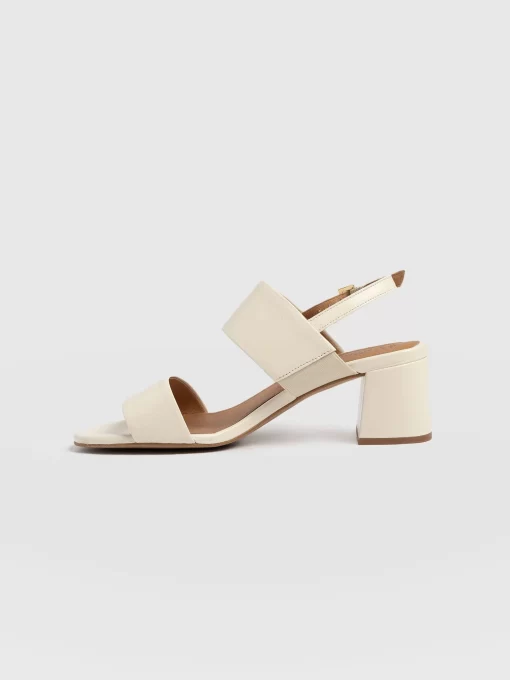 Introducing the Maida Block Heeled Mules in cream, the must-have addition to your shoe collection this season. Made in Portugal, these mules feature a block heel in a chic black colourway, adding a touch of sophistication to any outfit. The branded hardware offers a touch of luxury, while the chunky heel and slingback fastening provide ultimate comfort and support. These mules are perfect with a midi dress for weddings or special occasions or with our Cambridge Blazer and Pant Set for a workwear look.