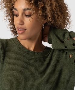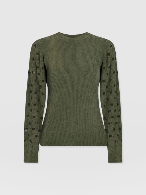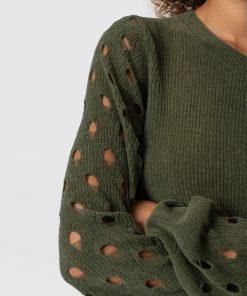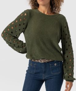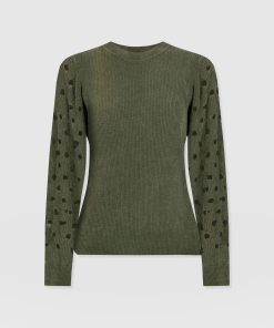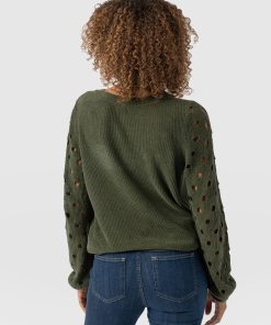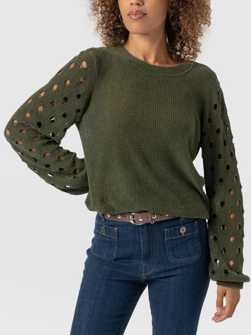 An elevated take on the classic crew-neck sweater, the Suki Lace Hole Knit in green is knitted to a relaxed silhouette using a sumptuously smooth cotton blend. Each style is finished by hand and lightly textured with a gentle rib for additional warmth. But it’s the sleeves that are drawing everyone’s attention; they’re detailed with an open-weave finish to reveal a hint of skin underneath. Wear yours with jeans and sneakers to add a touch of chic to your casual looks.