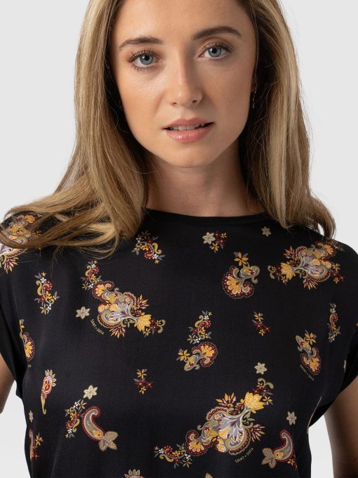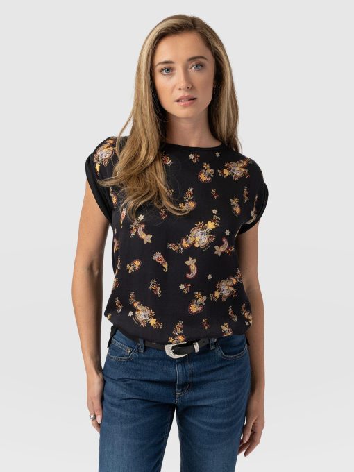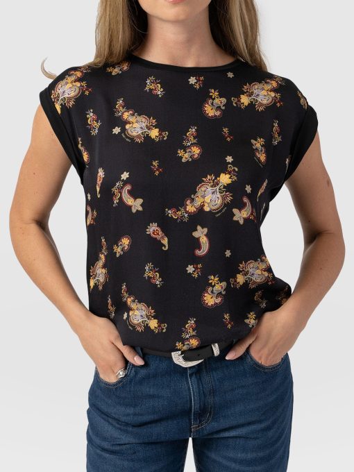 A classic crew-neck tee in our Black Paisley print with rolled cap sleeves. The Turn Up Tee is cut to a relaxed, easy fit that’s perfect for throwing on with any outfit. Each one is handmade in Europe using the softest cotton blend fabric to ensure all-day comfort. Pair it with jeans or leggings and your favourite sneakers, or opt for skirts on warmer days.