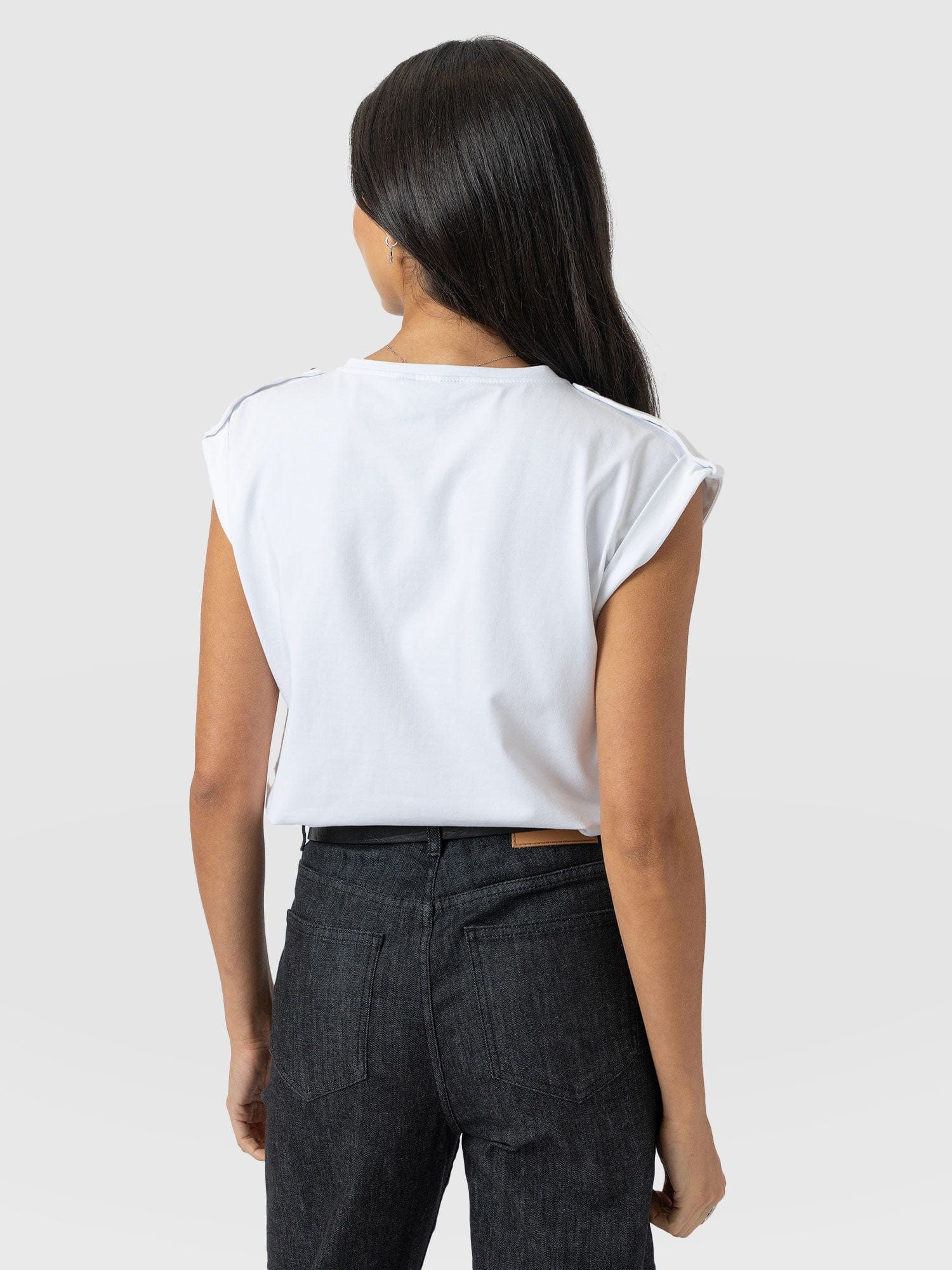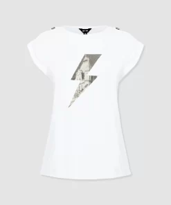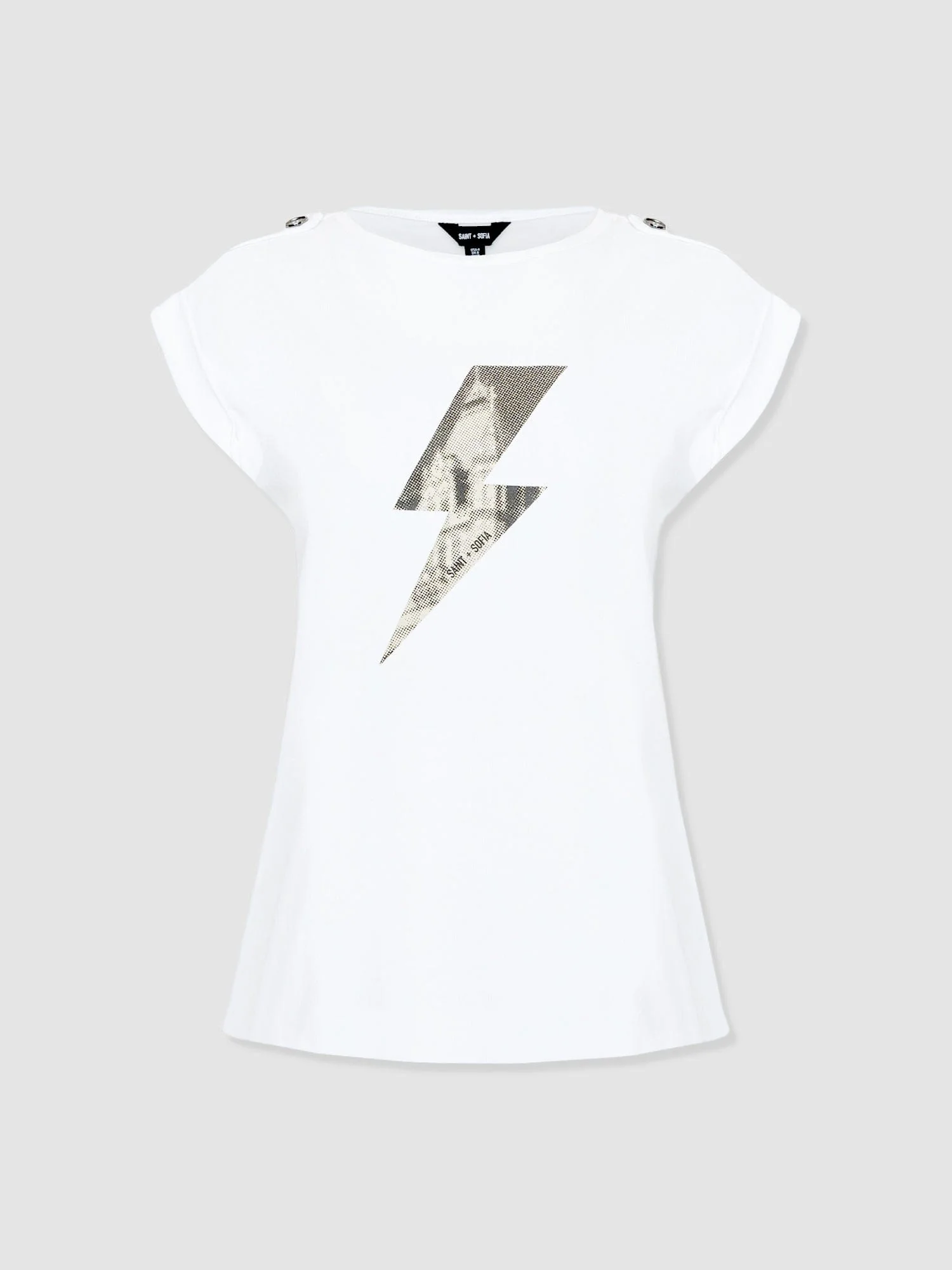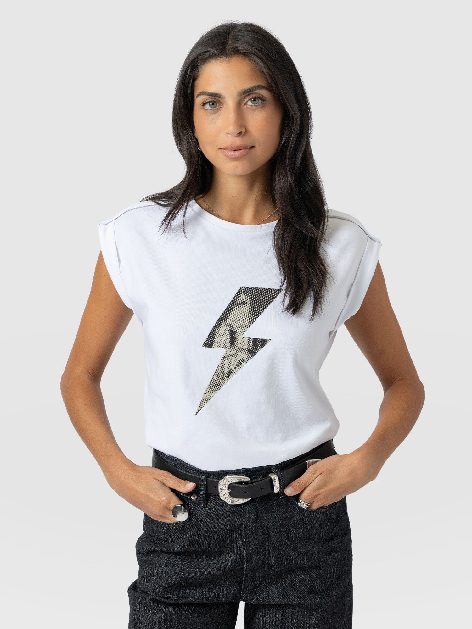 Saint + Sofia Women’s Turn Up Tee – White – Black Lightning Bolt | White – Black Lightning Bolt