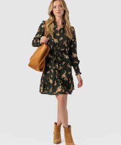 Saint + Sofia Women’s Maggie Wrap Short Sleeve Midi Dress- Black Spring Floral | Black Spring Floral
